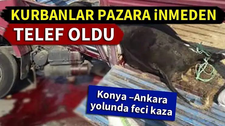 Konya-Ankara yolunda, kurbanlık taşıyan kamyonun, yolcu otobüsüne arkadan çarpması sonucu 6 kişi yaralandı. 2 tane büyükbaş hayvan da telef oldu. Kurbanlıklardan akan kanlar, yolun büyük bölümünü kapladı