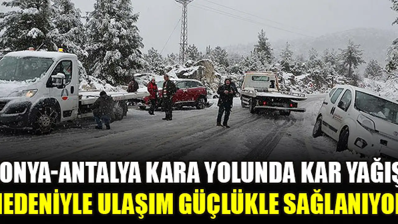Konya-Antalya kara yolunda kar yağışı nedeniyle ulaşımda güçlük yaşanıyor.