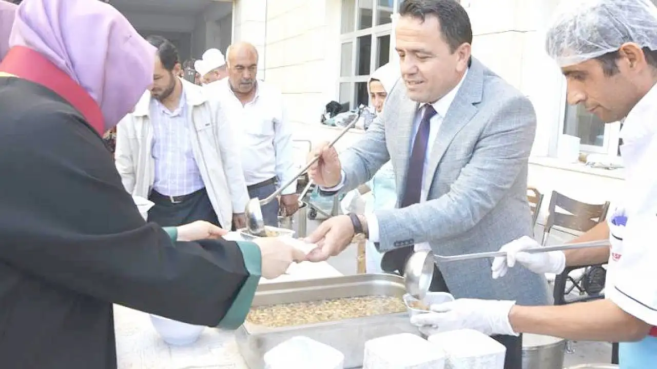 Muharrem ayı münasebetiyle Konya Barosu tarafından adliye kafeterya bahçesinde avukatlara ve adliye personeline aşure ikramı yapıldı.