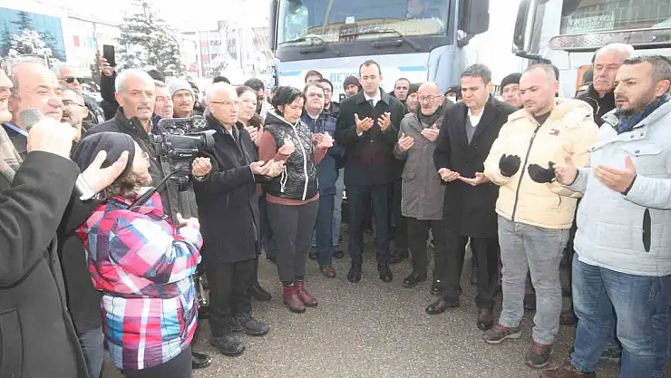 Konuşmaların ardından yapılan dua sonrasında yardım tırları ile gönüllüleri taşıyan otobüs ve araçlar Hatay'a gitmek üzere yola çıktı.