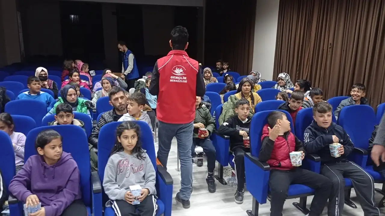 Konya'nınBozkır ilçesinde Gençlik Merkezi ve Selçuk Üniversitesi Bozkır Meslek Yüksekokulu işbirliğiyle depremzede çocuklara film izleme etkinliği düzenlendi.
