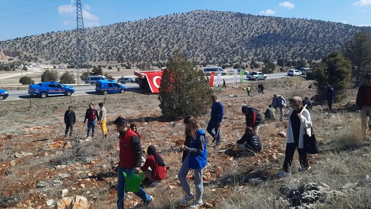 Konya'nın Bozkır ilçesinde "Orman Haftası" etkinlikleri kapsamında fidanlar toprakla buluşturuldu.