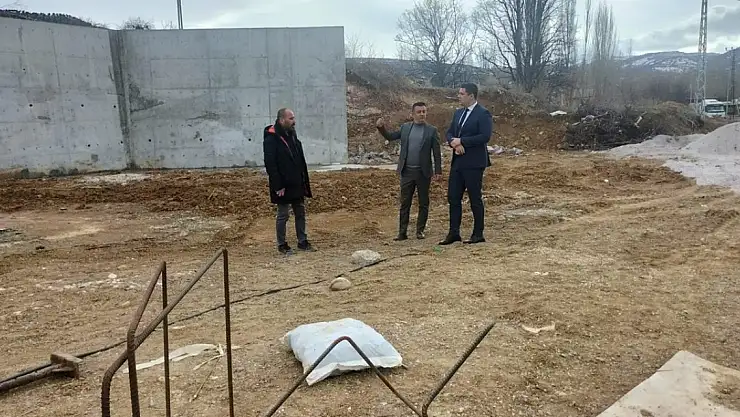 Bozkır Kaymakamı Tolga Turan, Bozkır İlçe Tarım ve Orman Müdürü Halil Durmuş ile hayvan pazarı şantiyesinde incelemede bulundu.
