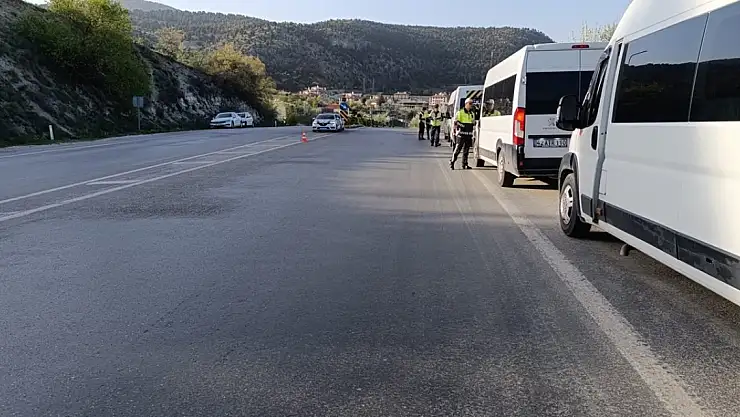 Bozkır ilçe girişinde yapılan denetlemelerde ilçe merkezine taşımalı eğitim yapan 32 okul servis aracı ve sürücüsü Okul Servis Araçları Hizmet Yönetmeliği kapsamında tek tek incelenerek, denetim formu tanzim edildi.