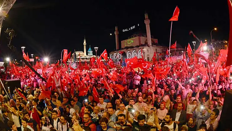 “Cenab-ı Hak bir daha böyle zalimlerle bizi muhatap etmesin. Cenab-ı Hak memleketimizi, milletimizi bölmeye, parçalamaya çalışanlara fırsat vermesin. Konya olarak destan yazdık. Gecenin bu saatinde, bu meydanda on binler var. Kadınımızla kızımızla, gencimizle yaşlımızla, bu meydanda demokrasi nöbetindeyiz, insan hakları nöbetindeyiz. Hak ve adalet mücadelesinin bir ferdi olmaktan gurur duyuyoruz. Bu Konya duruşu, bu milletimizin duruşu. Konya tarih boyunca milletimiz ne zaman dara düşmüşse, milletimiz, memleketimiz ne zaman tehdit altına alınmışsa o zaman gereğini ve görevini yapmıştır. Şimdi de yeni bir tehdide karşı dimdik ayaktayız. Hepinizi tebrik ediyorum. Allah sizlerden razı olsun.”