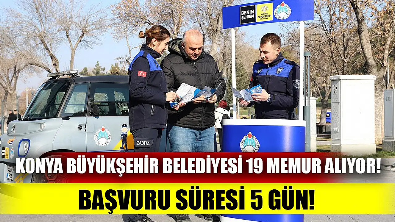 Konya Büyükşehir Belediyesi ilk defa atanmak üzere 19 adet zabıta memuru alacak. Başvurular KPSS puanlarına göre yapılacakken, başvurusu süresi ise 5 gün olarak belirlendi