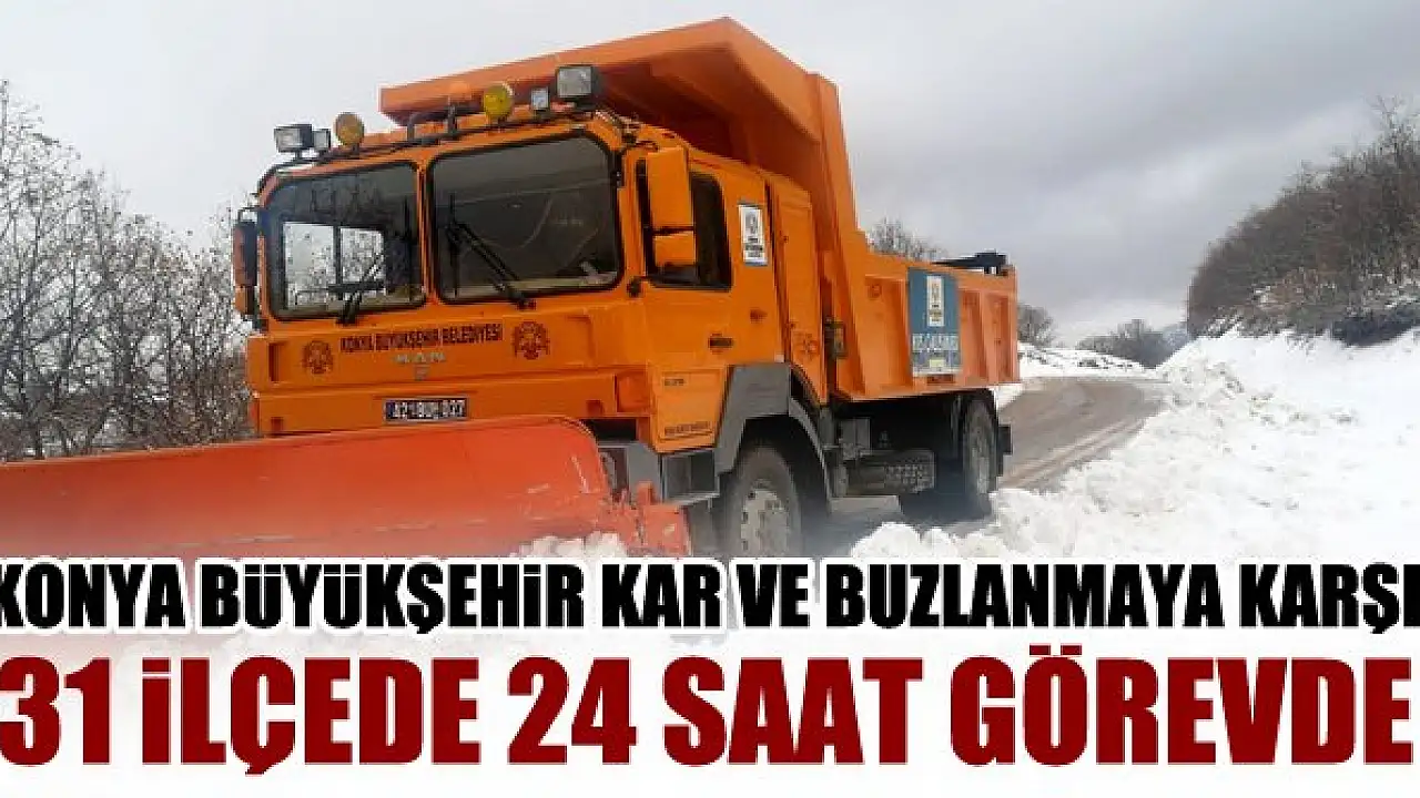 Konya Büyükşehir Belediyesi, kar ve buzlanmaya karşı 31 ilçede 24 saat görevde