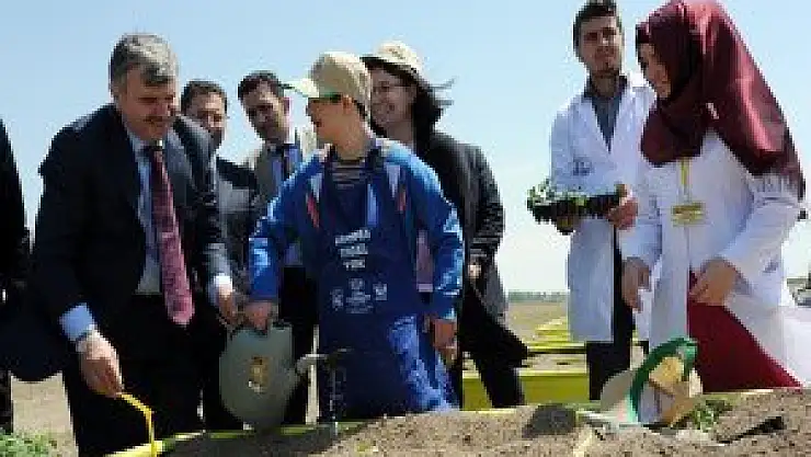 Konya Büyükşehir Belediye Başkanı Tahir Akyürek, Tarımsal Hizmetler Dairesi Başkanlığı'nın ilkokul ve özel eğitim öğrencilerine yönelik yürüttüğü projeler kapsamında çocuklarla birlikte sebze fidesi dikti.