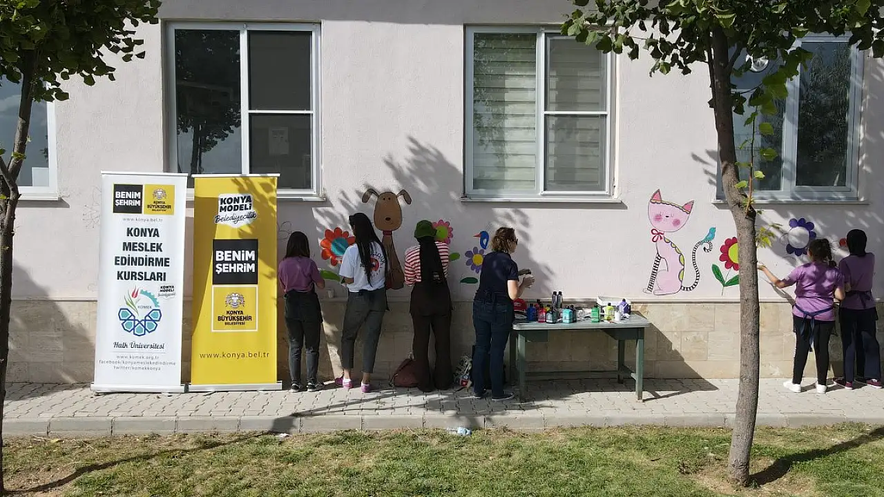 Hayvanları Koruma Günü kapsamında Konya Büyükşehir Belediyesi Genç KOMEK öğrenci ve eğitmenleri, Büyükşehir Belediyesi Sahipsiz Hayvan Bakımevi ve Rehabilitasyon Merkezi'ni fırçaları ile renklendirdi.