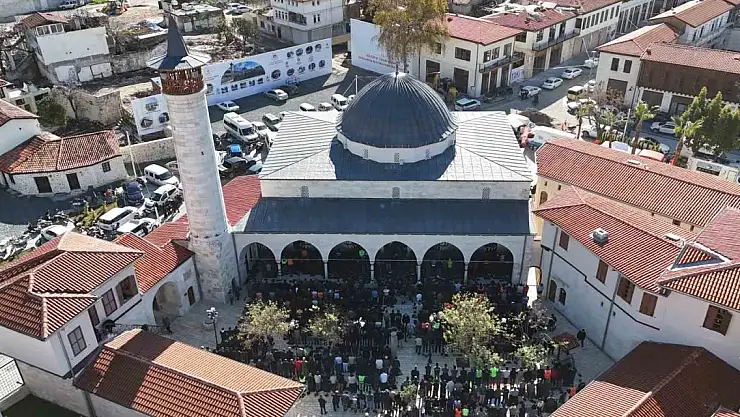 Kahramanmaraş merkezli depremlerde en çok yıkımın yaşandığı Hatay'da binlerce bina yerle bir olurken kentin en önemli tarihi yapıları da zarar görmüştü. Asırlar boyunca medeniyetlerin beşiği olan kentin sembol simgelerinden olan, 7. yüzyılda inşa edilen ve Anadolu'daki ilk cami olma özelliği taşıyan Habibi Neccar Camii de depremde ağır hasar almıştı. Depremde kuzey beden duvarı büyük hasar alan camide, Kültür ve Turizm Bakanlığı Vakıflar Müdürlüğü ile Konya Büyükşehir Belediyesi iş birliğinde Eylül 2023'te restorasyon çalışmalarına başlandı. Restorasyon ve rekonstrüksiyon çalışmalarının bittiği Habibi Neccar Camii, Cumhurbaşkanı Recep Tayyip Erdoğan tarafından geçtiğimiz cumartesi günü ibadete açıldı. Günler sonra yeniden Habibi Neccar Camii'ne cuma namazı kılma fırsatı bulan vatandaşlar camiye akın etti. Cuma namazı yoğunluğu yaşanan camideki kalabalık avluya sığmazken o anlar havadan görüntülendi.