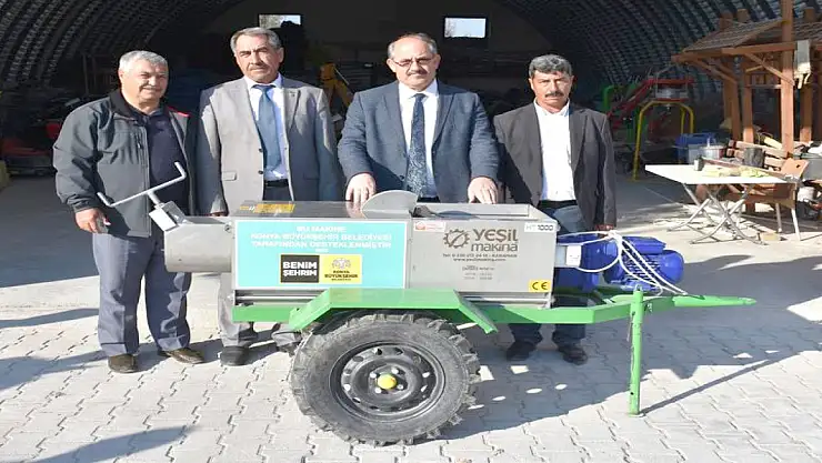Konya Büyükşehir Belediyesi tarafından ilçelerde çiftçilere yönelik tarımsal fide ve fidan desteğinin yanı sıra Karapınar'daki üzüm üreticisine üzüm sıkma makinesi desteği sağladı.
