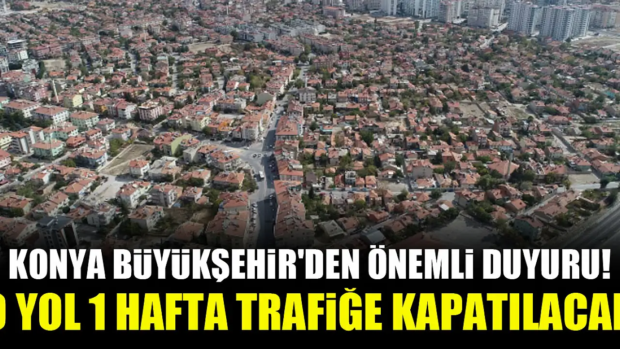 Konya Büyükşehir Belediyesi tarafından yapılan açıklamada, çalışma sebebiyle o yolun 28 Kasım Pazartesi günü saat 08:00'den 4 Aralık Pazar günü saat 23:00'e kadar trafiğe kapılacağı duyuruldu.