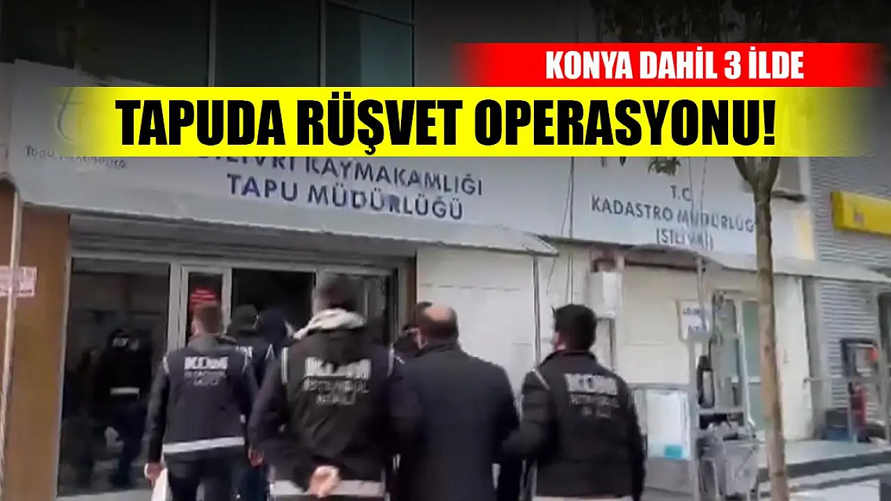 Aralarında Konya'nın da bulunduğu İstanbul merkezli 3 ilde düzenlenen operasyonda, tapu müdürlüğünde yapılan usulsüz işlemler karşılığında rüşvet aldıkları öne sürülen 79 şüpheli gözaltına alındı.