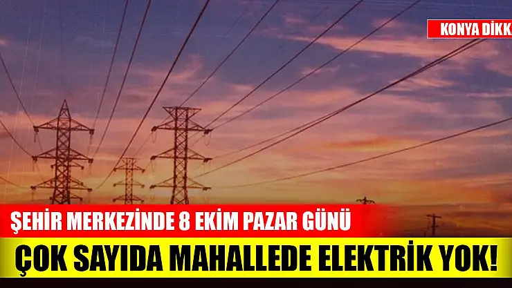 Konya dikkat! Şehir merkezinde 8 Ekim Pazar günü çok sayıda mahallede elektrik yok!