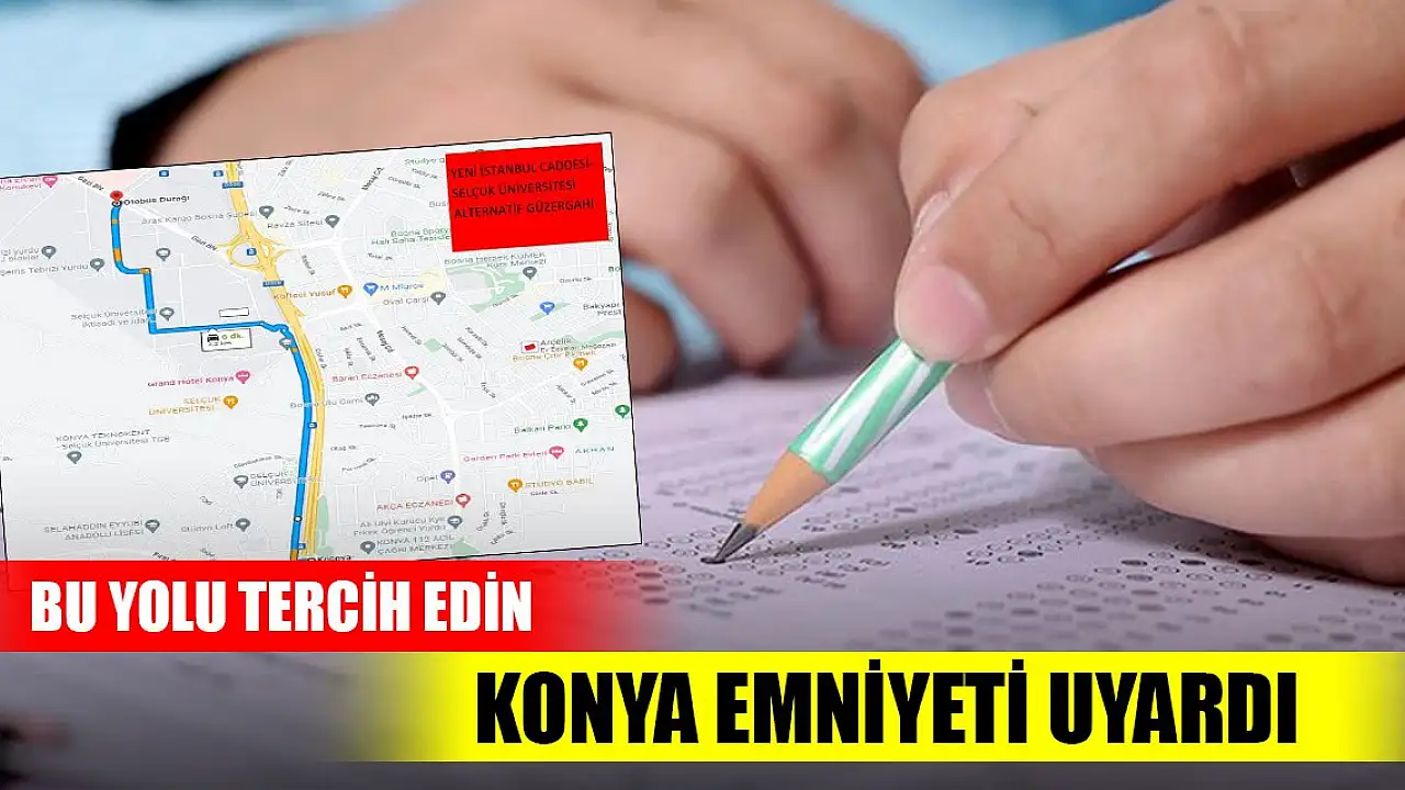 Selçuk Üniversitesinde sınava girecek adaylar, Yeni İstanbul Caddesi güzergahında oluşabilecek yoğunluktan dolayı problem yaşamamaları için “Yeni İstanbul Caddesi Fırat kavşağı, İstanbul Caddesi yan yol üzerinden Alaeddin Keykubat Kampüsüne ve Ankara Caddesi'ni takiben Aliya İzzet Begoviç Caddesi üzerinden Selçuk üniversitesi Alaeddin Keykubat kampüsüne alternatif güzergahları kullanarak daha hızlı bir şekilde ulaşabilecekler.