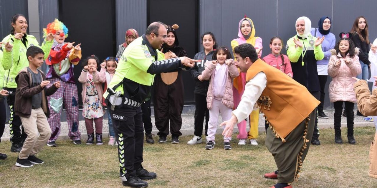 Mesnevi Kız Öğrenci Yurdunda konaklayan 9-10 yaş arası 40 depremzede çocuk için Trafik Denetleme Şube Müdürlüğü ve Karatay Belediyesi tarafından, çocukları deprem gündeminden uzaklaştırmak amacıyla etkinlik düzenlendi.