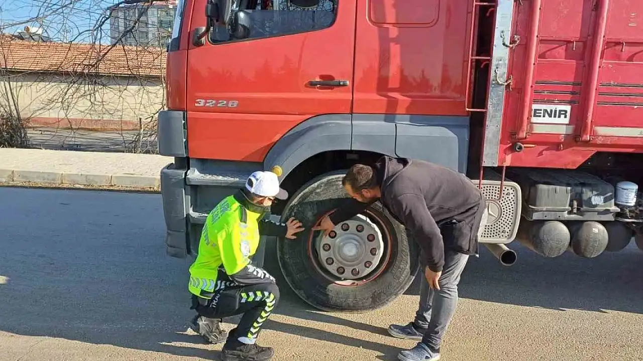Konya'da yolcu ve sürücülerin can ve mal güvenliğinin sağlanması amacıyla kış lastiği denetimleri yapılıyor.
