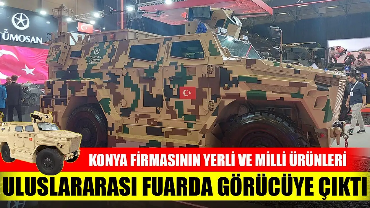 Bugün kapılarını ziyaretçilere açan Uluslararası Savunma Sanayi Fuarı'nda (IDEF 2023) yerli ve milli 16 ürününü sergileyen Konya'nın önde gelen firmalarından TÜMOSAN'ın operasyon sırasında sessiz ilerleme özelliği bulunan Pusat Hibrit isimli araç dikkat çekiyor.