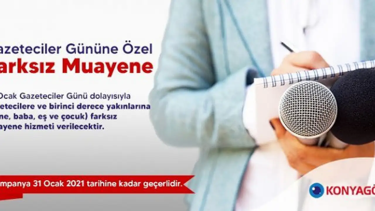 10 Ocak Çalışan Gazeteciler Günü dolayısıyla Konya Göz'de gazetecilere özel indirim uygulanacak.
