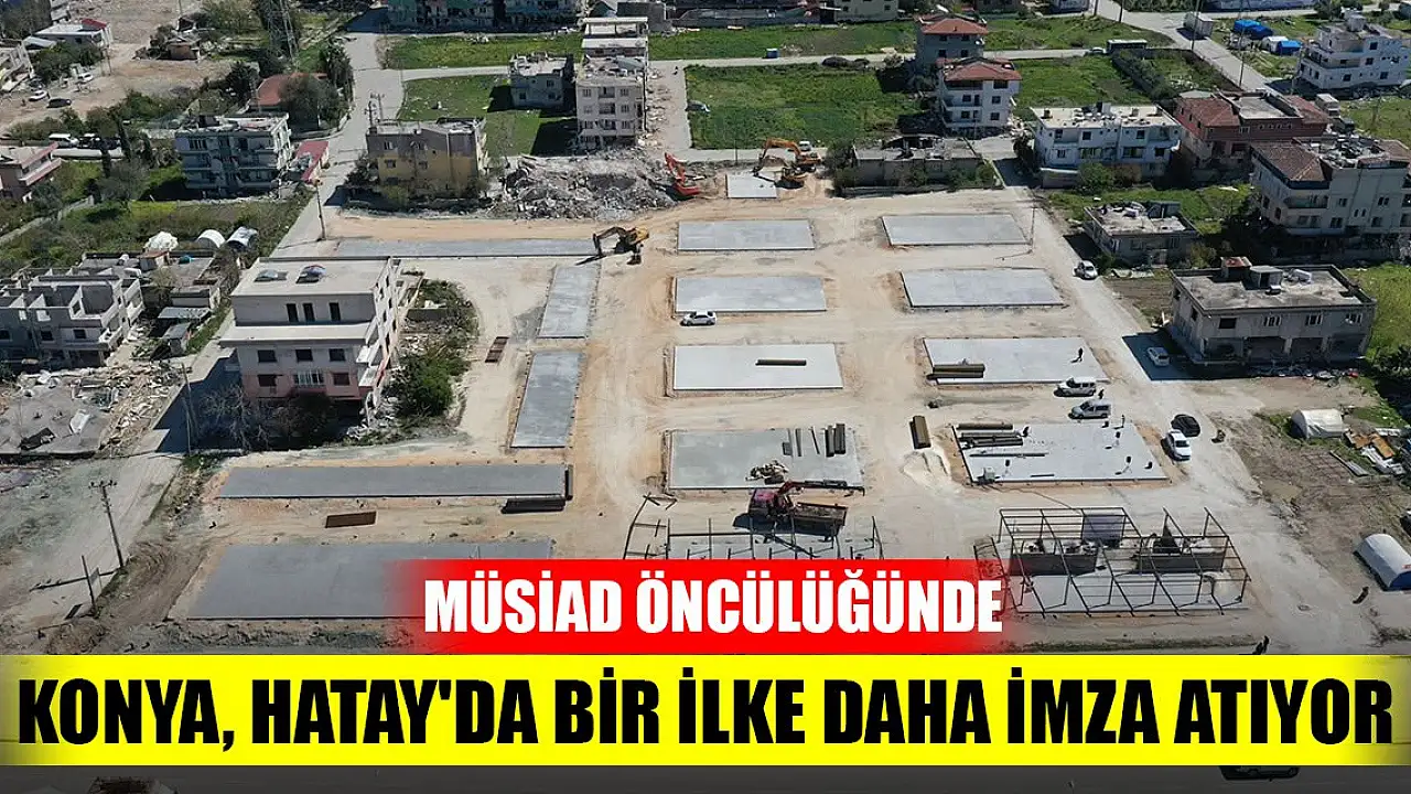 Konya Büyükşehir Belediyesi, MÜSİAD Konya Şubesi ve Konya Sanayi Odası işbirliğinde Hatay Narlıca’da 152 dükkandan oluşan Konya Bedesteninin temeli atıldı.