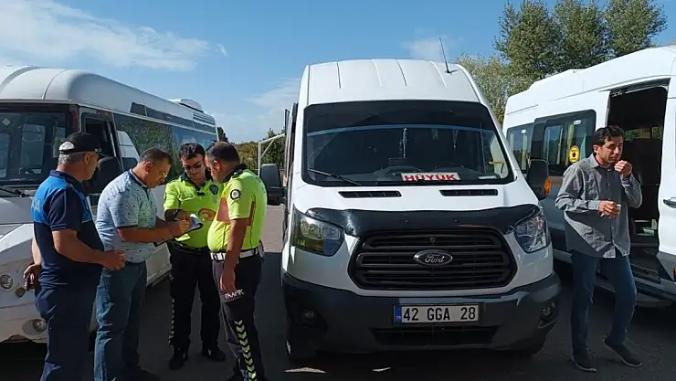 Konya'nın Hüyük ilçesinde öğrenci taşıyan servis araçları denetlendi.
