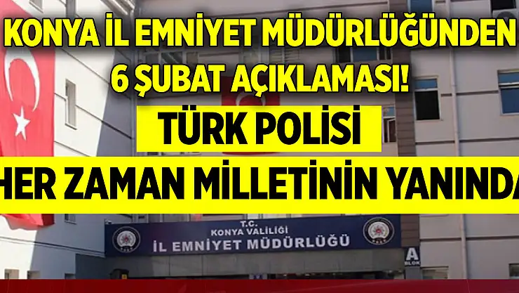 Konya İl Emniyet Müdürlüğünden 6 Şubat açıklaması! Türk polisi milletinin yanında