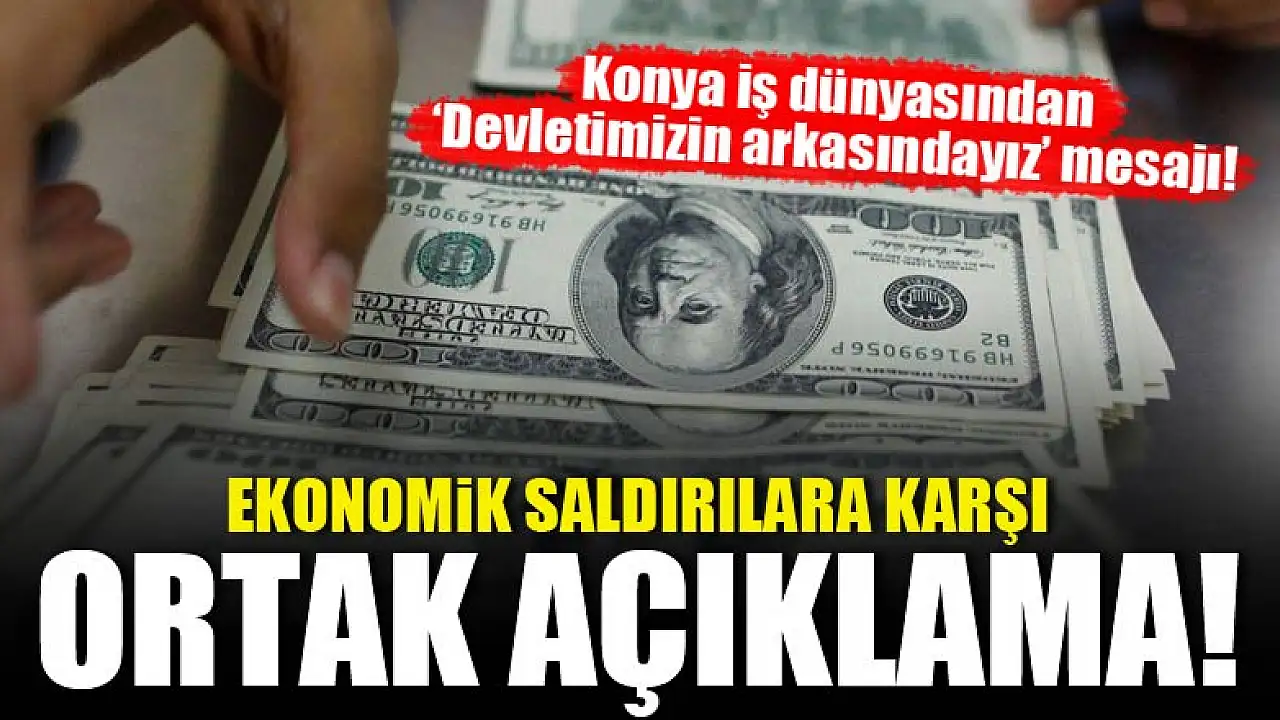 Konya Ticaret Odası, Konya Ticaret Borsası ve Konya Sanayi Odası son günlerde ekonomide yaşanan gelişmelerle ilgili ortak bir açıklama yaparak, 'Konya iş dünyası olarak tüm ekonomik saldırılara karşı dimdik devletimizin arkasındayız' mesajı verdi.