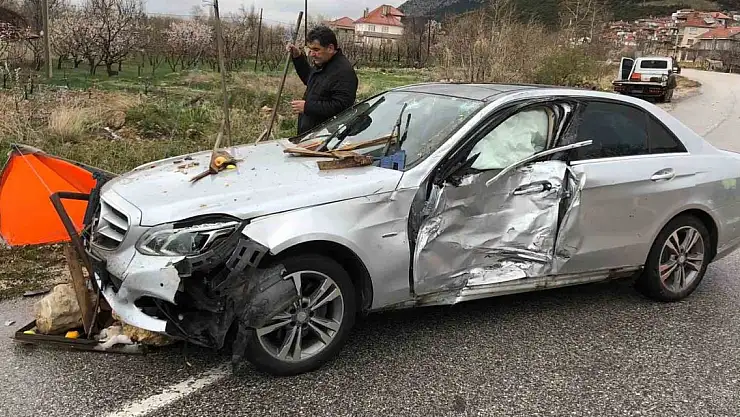 Konya-Isparta Karayolu üzerinde bulunan Mahmatlar köyünde yolun yağışlı ve kaygan olması nedeniyle sürücüsünün hakimiyetini kaybettiği lüks otomobil, yol kenarındaki manav tezgahına çarparak durabildi.