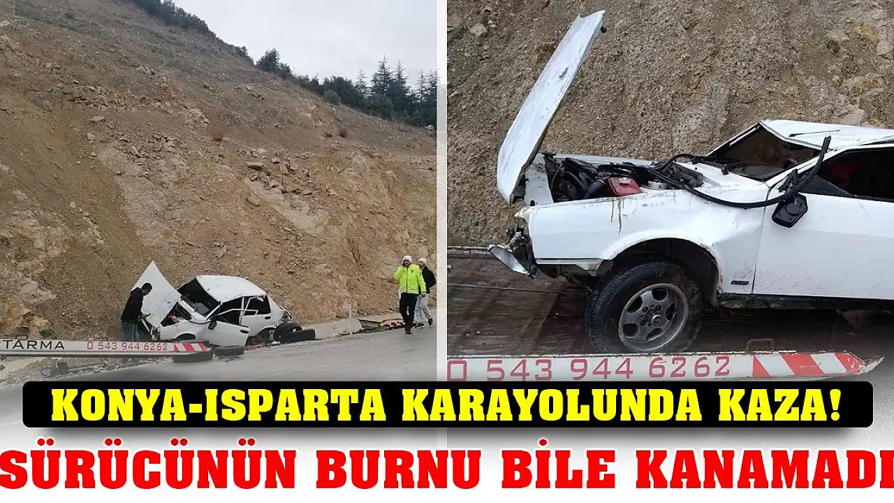 Konya-Isparta karayolunda kaza! Sürücü burnu bile kanamadan kurtuldu