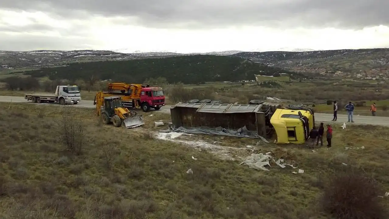 Konya-Isparta karayolunda tır devrildi: 2 kişi...