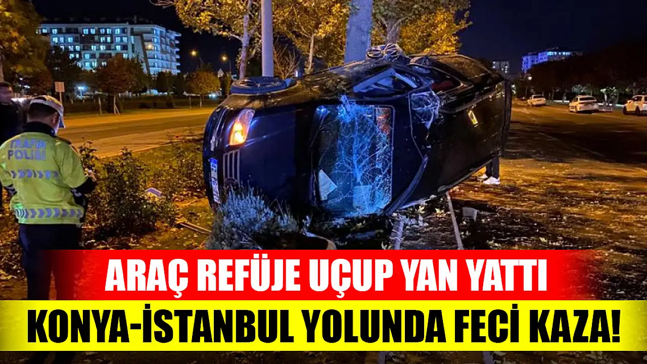 Konya-İstanbul yolunda feci kaza! Araç refüje uçup yan yattı