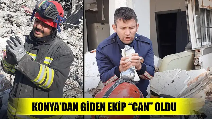 Konya Büyükşehir Belediyesi itfaiye ekipleri, Hatay'da depremde yarısı yıkılan bir binanın tepesinde uçan güvercini takip ederek enkaz altında kalan yuvadaki 2 güvercini kurtardı.