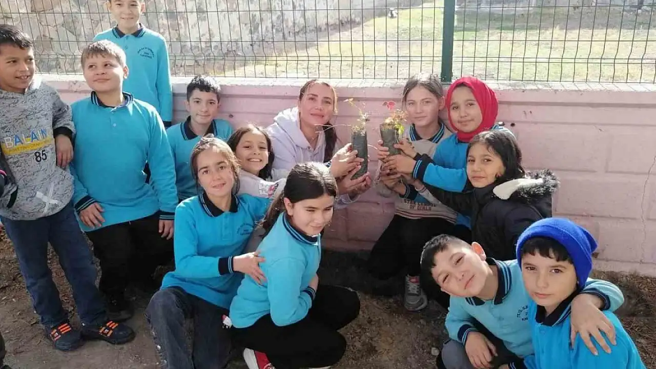 Konya'nın Karapınar ilçesinde ilk ve ortaokul öğrencileri Çevreme Duyarlıyım Değerlerime Sahip Çıkıyorum (ÇEDES) projesi kapsamında 450 adet fidanı toprakla buluşturdu.
