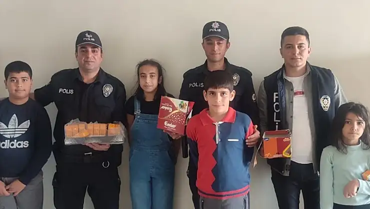 Konya Karapınar'da polislerden depremzedelere bayram ziyareti