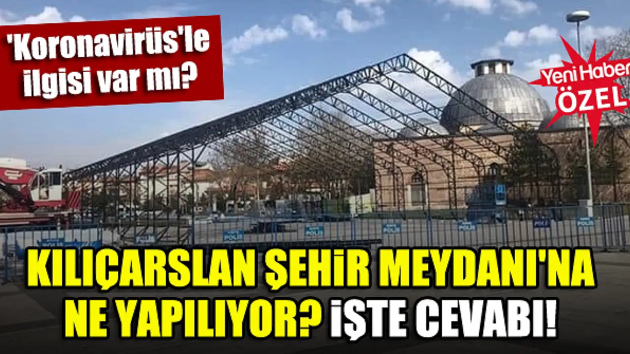 Konya'nın merkezinde bulunan Kılıçarslan Şehir Meydanı'nda bir süredir inşa çalışmaları devam ediliyordu. Vatandaşlar sosyal medya paylaşımlarında 'Koronavirüs'le bir ilgisi var mı, sağlık alanı mı oluşturuluyor?' gibi sorular yöneltiyordu.