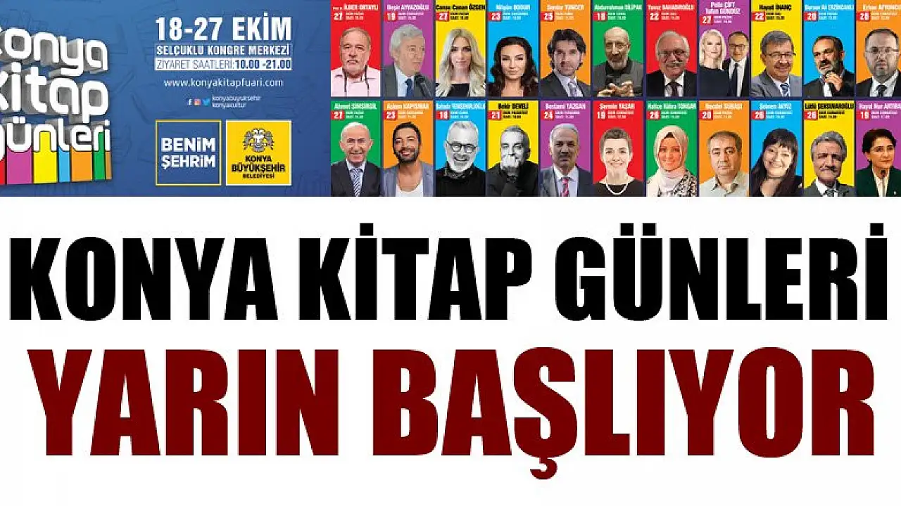 Konya, 1 milyon kitap, 250 yayınevi, 450 yazar ve 500 etkinliğin yer alacağı Konya Kitap Günleriyle adeta bir kültür bayramı ile buluşuyor. Fuar, bu yıl Selçuklu Kongre Merkezinde kitapseverleri kitapla buluşturuyor.