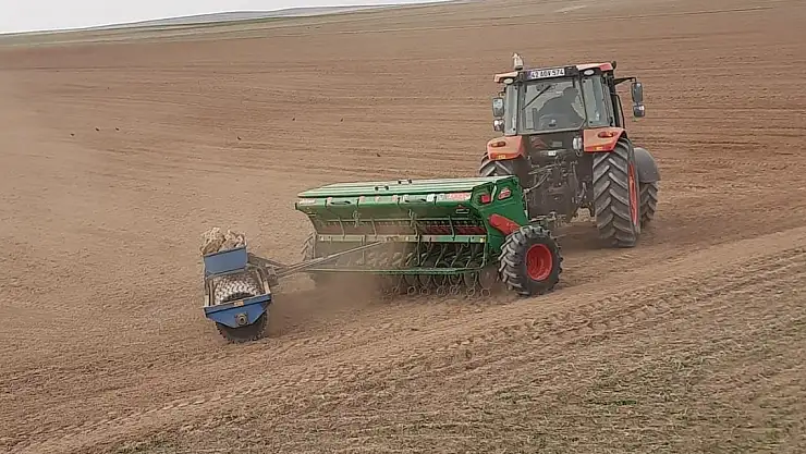 Konya'nın Kulu ilçesinde mercimek, kimyon, aspir, fasulye, lavanta ve elma fideleri toprakla buluştu.