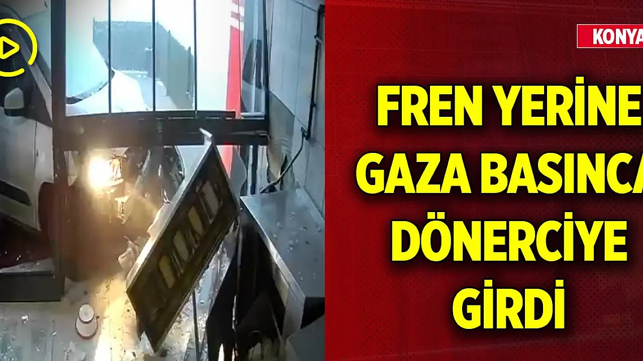 Konya'da bir dönerciye lavaş getiren hafif ticari araç, sürücüsünün direksiyon hakimiyetini kaybetmesi sonucu iş yerine girdi. Olay anı güvenlik kamerasına yansıdı.