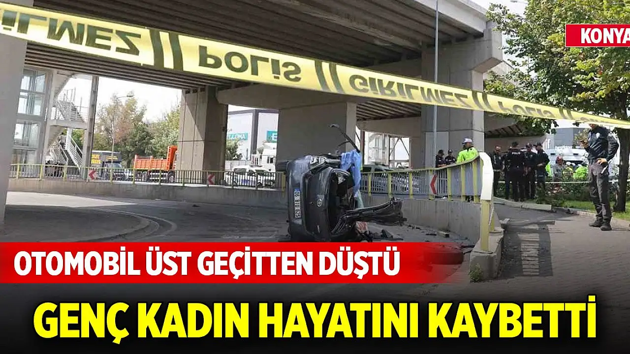 Konya'da sürücüsünün direksiyon hakimiyetini kaybeden otomobil, bariyerleri kırarak üst geçitten aşağıya düştü. Kazada otomobil sürücüsü 26 yaşındaki genç kadın hayatını kaybetti.