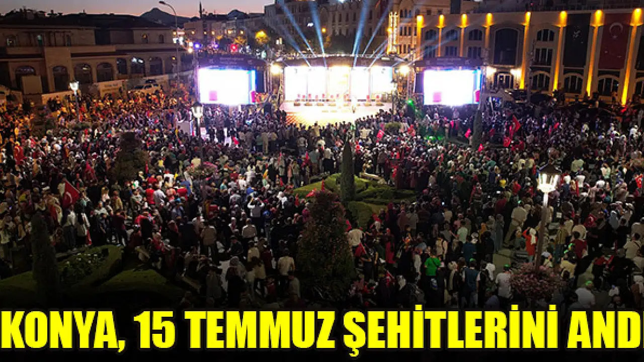 Konya'da '15 Temmuz Demokrasi ve Milli Birlik Günü' nedeniyle binlerce kişi ellerinde Türk bayraklarıyla Mevlana Meydanı'nda buluşup, şehitleri andı, dua etti.