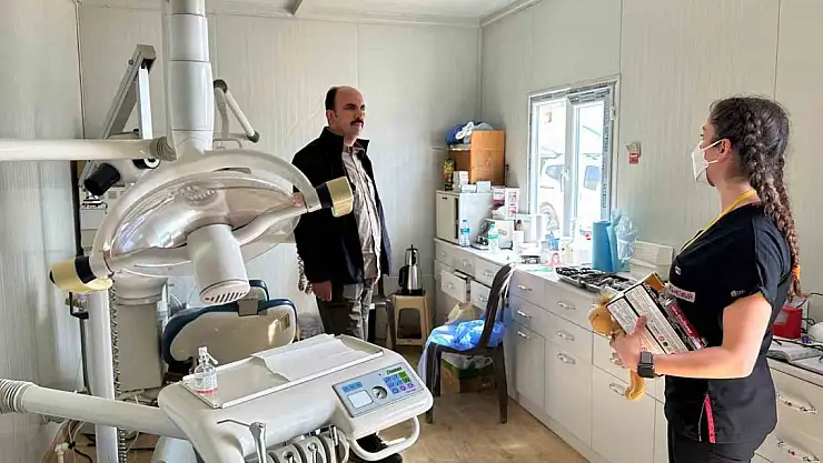 Konya Büyükşehir Belediye Başkanı Uğur İbrahim Altay, Hataylılar için deprem bölgesinde hizmet veren Konya Mobil Göz ve Mobil Diş Araçlarında incelemelerde bulundu.