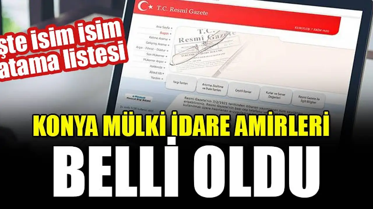 Atama kararları Resmi Gazete'de yayımlandı. Mülki İdare Amirleri Atama Kararnamesi kapsamında Konya ve ilçelerine yapılan atamalar da belli oldu.İşte isim isim atama listesi...