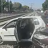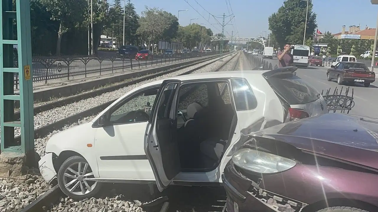 Konya Nalçacı Caddesi'nde çarpışan iki araçtan biri tramvay yoluna girdi