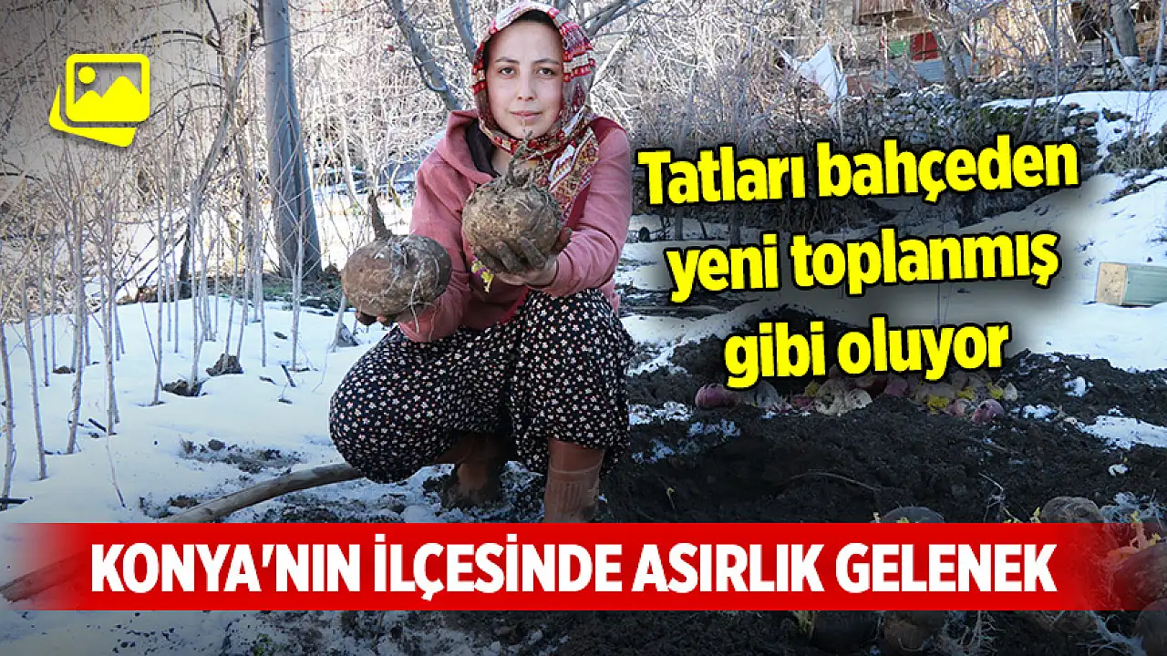 Konya'nın Hadim ilçesinde vatandaşlar, yazın hasat ettikleri ürünleri kış boyunca taze tüketebilmek için toprak altına gömüyor. 'Kuyulama' yöntemiyle dondurucu soğukta muhafaza edilen patates, pancar ve havuçlar, aylar sonra bile bahçeden yeni toplanmış gibi taptaze çıkıyor.