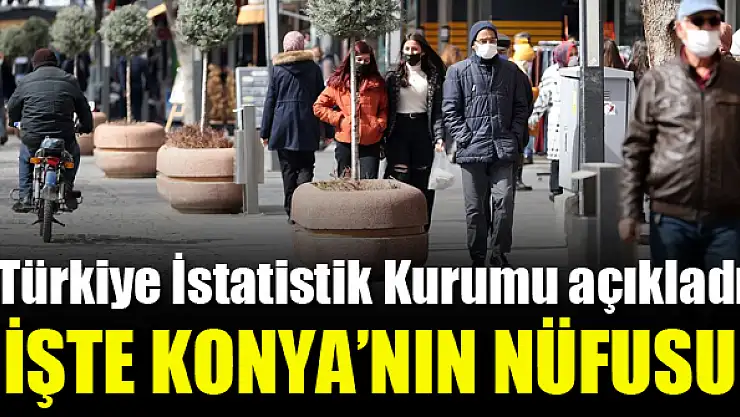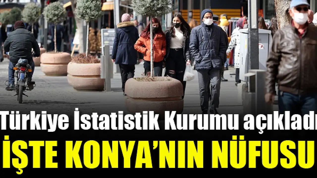 Türkiye nüfusu 2021'de bir önceki yıla göre 1 milyon 65 bin 911 kişi artarak 84 milyon 680 bin 273 kişiye ulaştı. Adrese Dayalı Nüfus Kayıt Sistemi (ADNKS) sonuçlarına göre Konya nüfusu da 2 milyon 277 bin 17 kişi oldu.