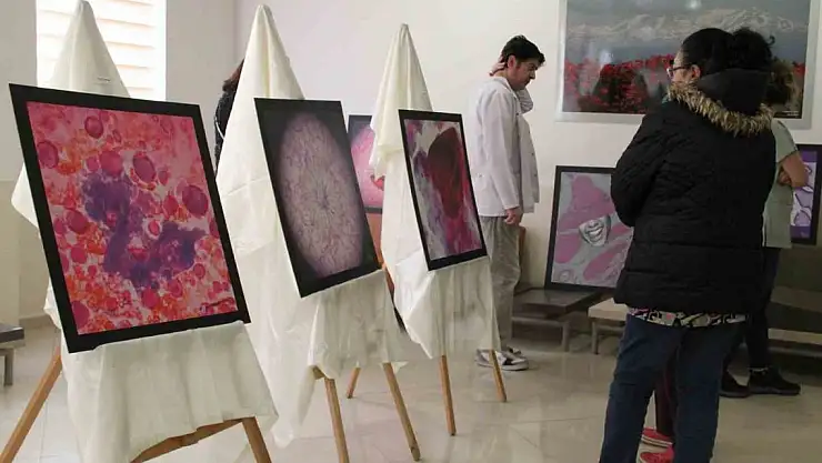 Dr. Aysuhan Okay, 1-7 Nisan Kanser Haftası nedeniyle "Teşhisten Sanata Patolojinin Büyülü Dünyası" adlı sergiyi açtıklarını söyledi. Her insanın bir hikayesi olduğunu, kendisinin de onlardan biri olduğunu belirten Dr. Okay, "Materyalim; mikroskop, mesleğim, cep telefonu kamerası, doku örnekleri ve hayallerim. Meslek hayatım boyunca birikimlerimi fotoğrafa dökmeyi ve bunların kalıcı olmasını istedim. Bu serginin en güzel tarafı ise gelirinin ülkemizde yakın zamanda yaşanan deprem felaketinden etkilenen üniversite öğrencilerinin eğitimine bağışlanacak olmasıdır. Sergimiz 65 adet fotoğraftan oluşmaktadır. Mide, uterus, prostat, deri, testis, tiroit dokularına ait örnekler var. Tüm fotoğraflar orijinal doku ve orijinal renktedir, sadece bazılarına hayal ederek dijital ortamda küçük eklemeler yaptım" dedi.