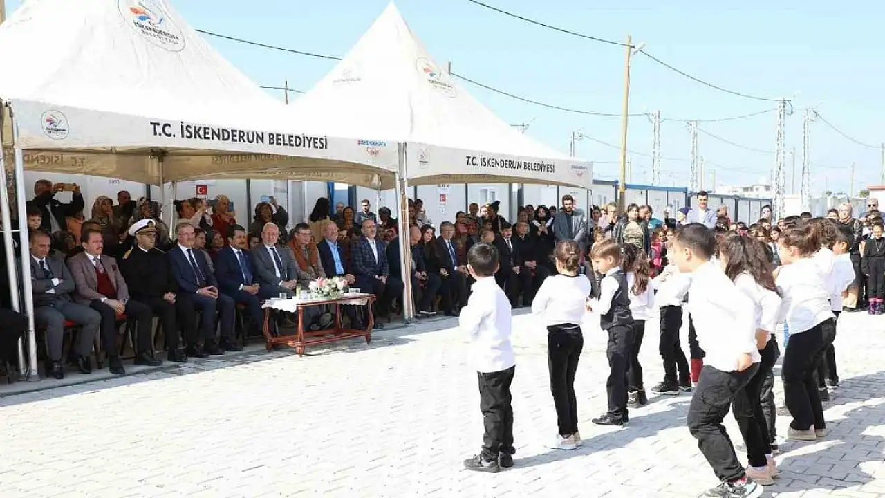 Konya Organize Sanayi Bölgesi (KOS) tarafından Hatay'ın İskenderun ilçesine kurulan 203 konteynerlik 'KOS Konteyner Kent Yaşam Merkezi'ne yapılan ilkokulun açılışı gerçekleştirildi.