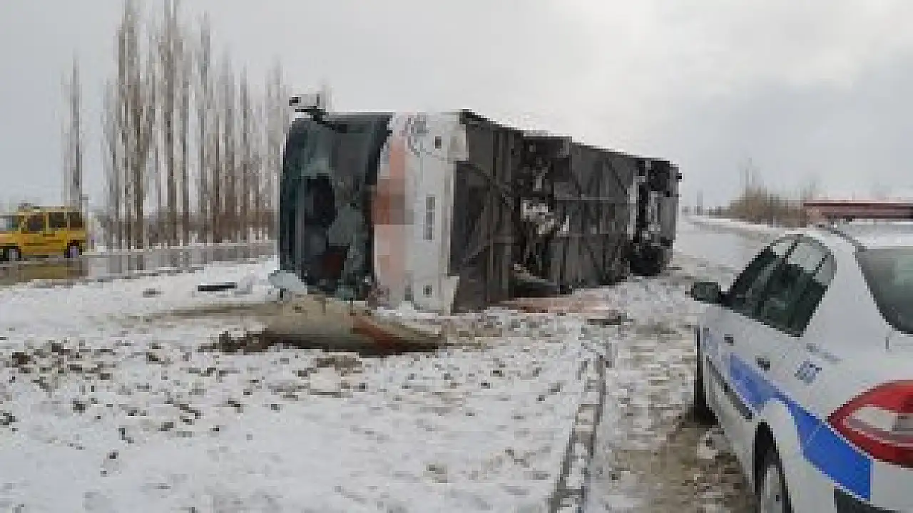 Nihat Gencer (36) idaresindeki 42 UN 555 plakalı yolcu otobüsü, Afyonkarahisar-Konya karayolunun 25. kilometresindeki Değirmendere kavşağında, refüje devrildi. Yaklaşık 20 metre sürüklendikten sonra durabilen otobüsün sürücüsü Gencer ile araçtaki 32 kişi yaralandı. Sağlık ekiplerince Afyonkarahisar'daki çeşitli hastanelere kaldırılan yaralılardan ikisinin sağlık durumunun ciddi olduğu öğrenildi. Bu arada, kaza sonrasında yolun bir bölümünün trafiğe kapanması nedeniyle ulaşım kontrollü olarak sağlandı.