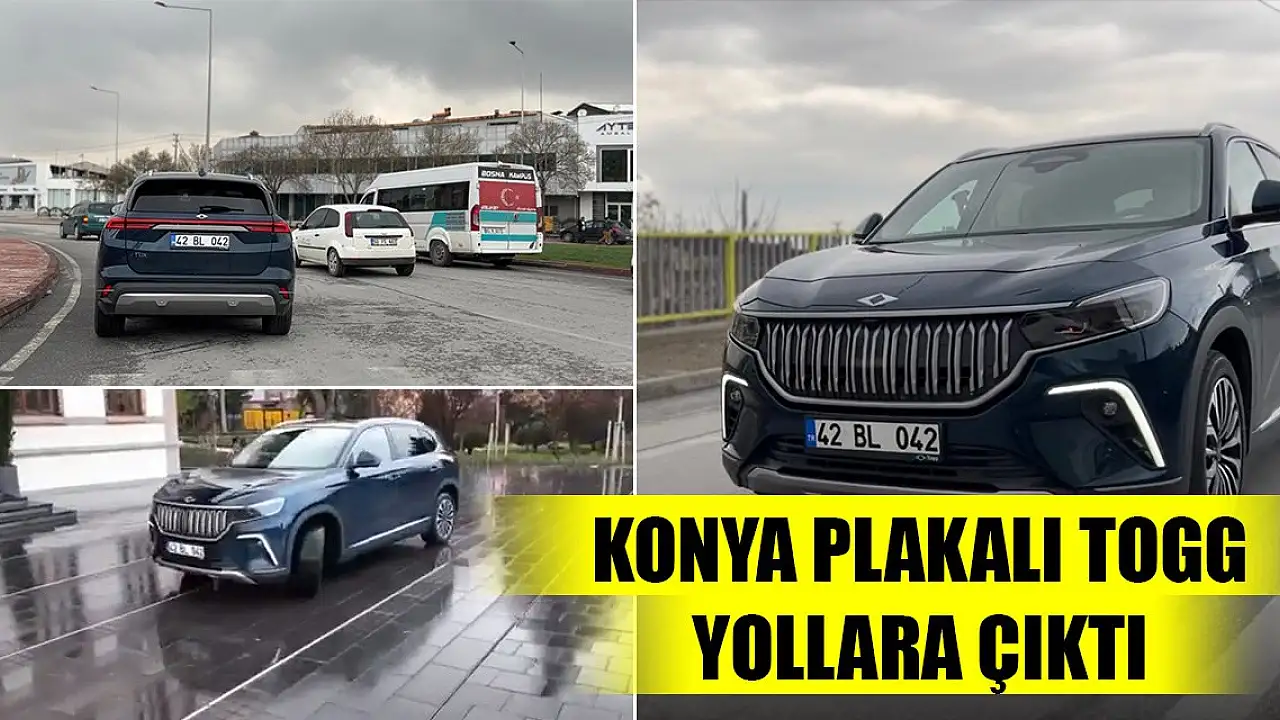 Konya trafiğinde 42 plakalı Togg'un görenler aracı ilgiyle takip ettiler.