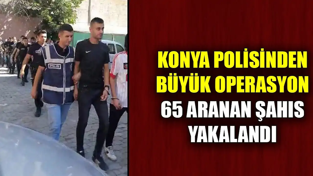 Konya İl Emniyet Müdürlüğü'nün il merkezinde yaptığı büyük operasyonda çeşitli suçlardan 306 yıl hapis cezası ve yakalama emri bulunan 65 kişi yakalandı.